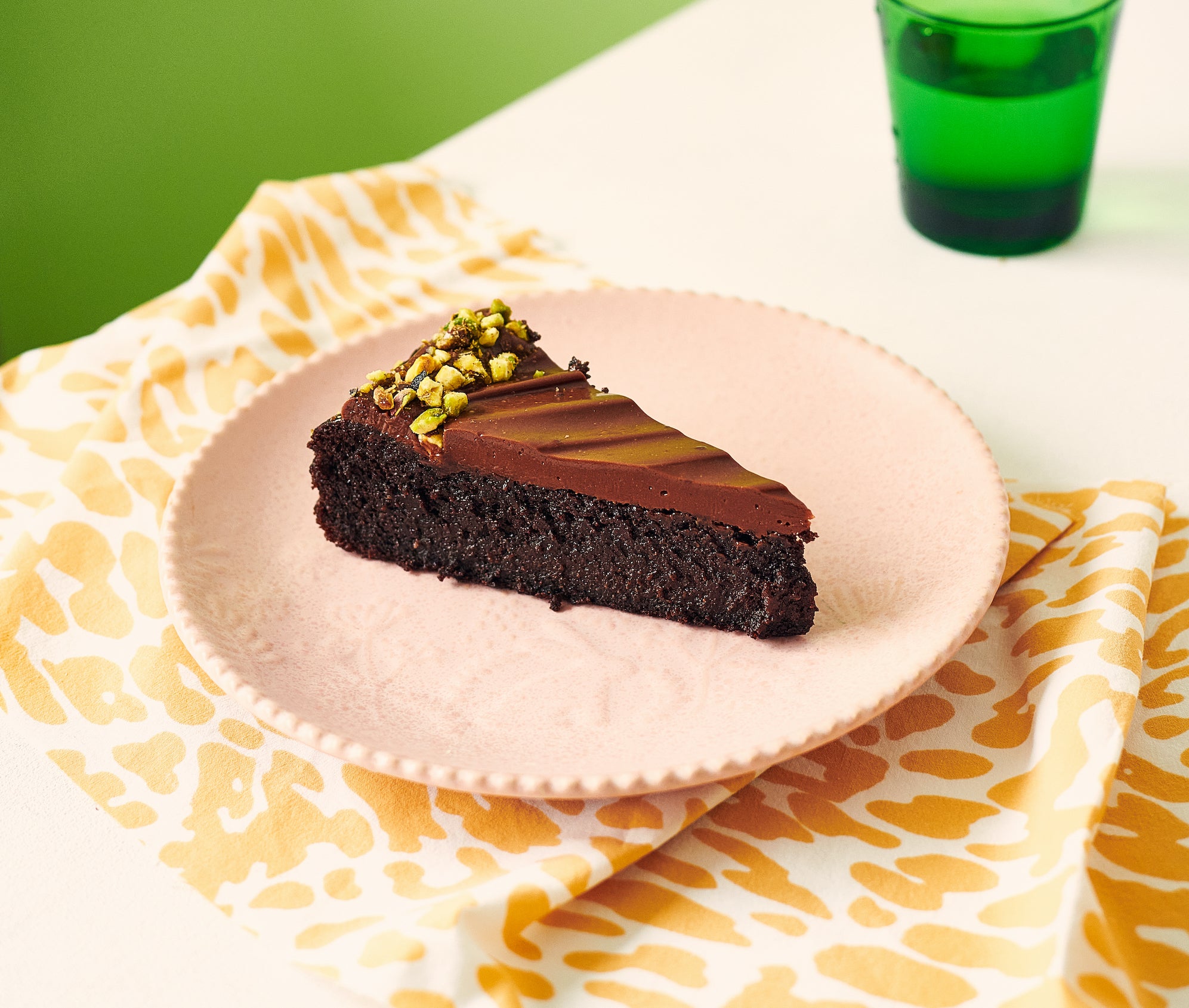 Here's a cake with a nostalgic nod to the 1970s, but we've dressed it up for your modern tastebuds. It's the type of fudge cake that showed up at all those birthday parties, school fetes, or was served in restaurants alongside Mateus Rosé.