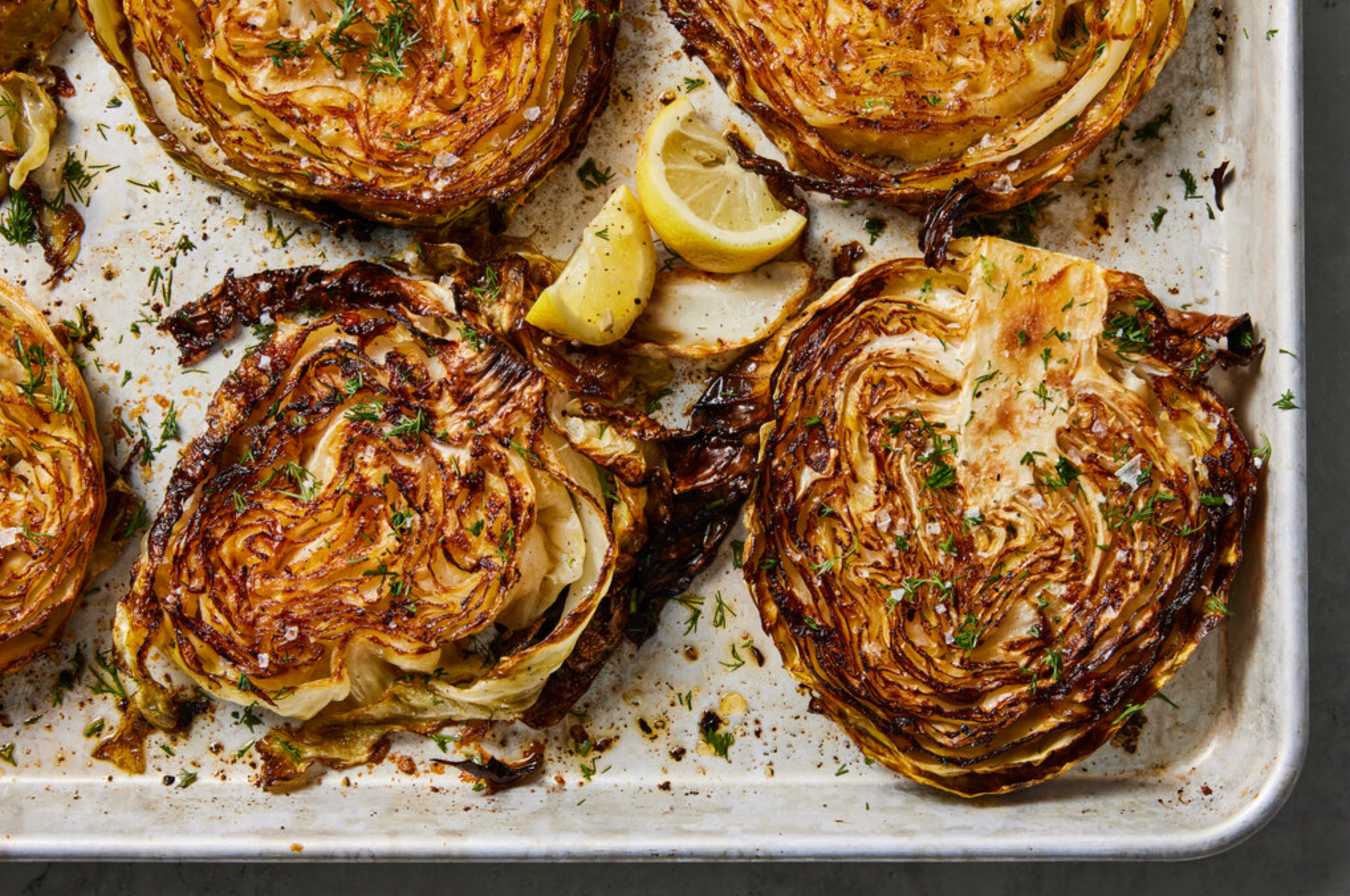 One of my favourite winter meals to cook is cabbage steaks. Perfect for a work night veggie dish, with the added bonus of still having steak in the name. All you need to do is cut a cabbage lengthways, season the cut-sides with salt, pepper and olive oil and fry them on a raging heat until they're charred. So charred you think you've ruined dinner. But you haven't, you just need to add a metric ton of butter and some chopped garlic to the pan, then watch all that burnt caramelised goodness become one with the cabbage. The end result is a tender, juicy steak, oozing with garlicky rich butter. I'm pretty sure it's a healthy meal, even if it's technically more butter than vegetable at this point.