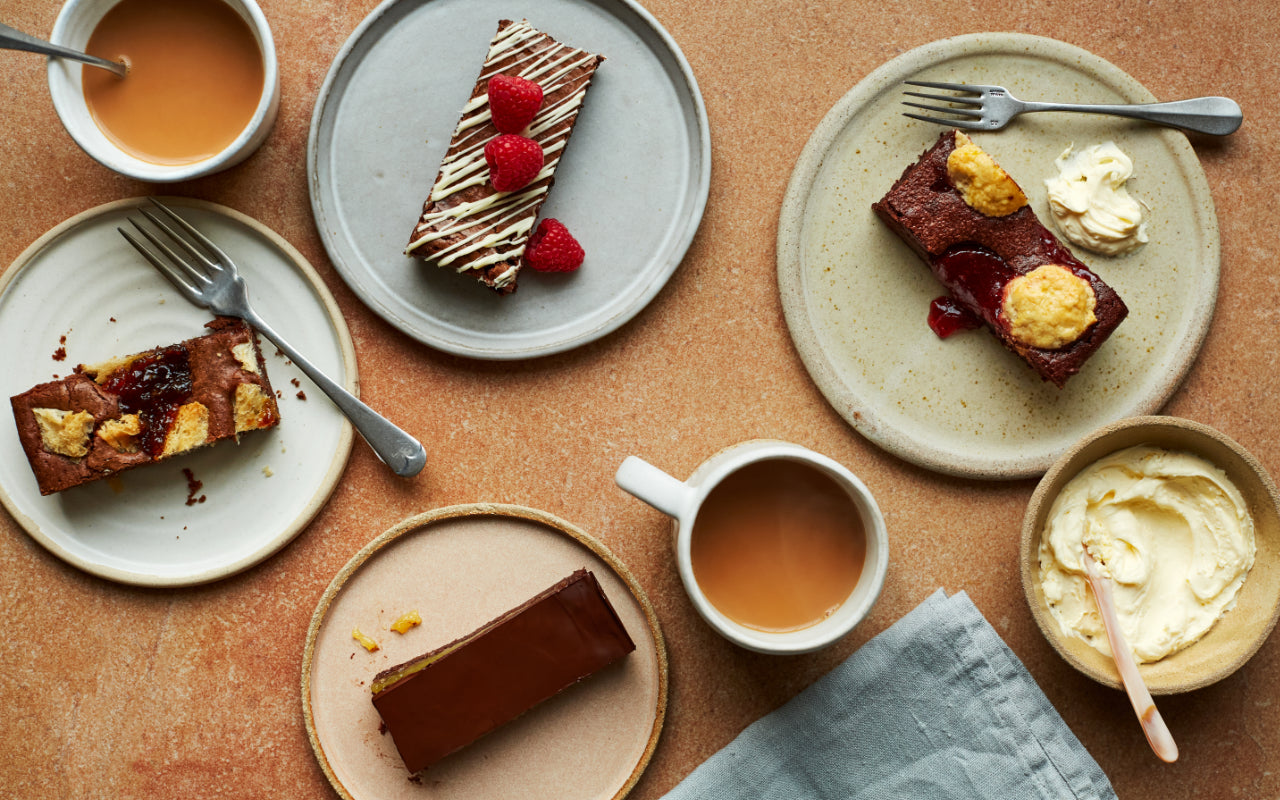 Cakes from left to right: Ramblejack, Almond Brownie.