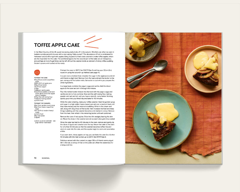 In the West Country of the UK, apple harvesting really kicks off in the autumn. Windfalls can often be seen in baskets outside people’s houses with a sign saying ‘Help yourself’. The abundance of fruit is celebrated for Halloween and bonfire night with apples being dipped in a hard crack caramel to make toffee apples, which are the inspiration for this cake.